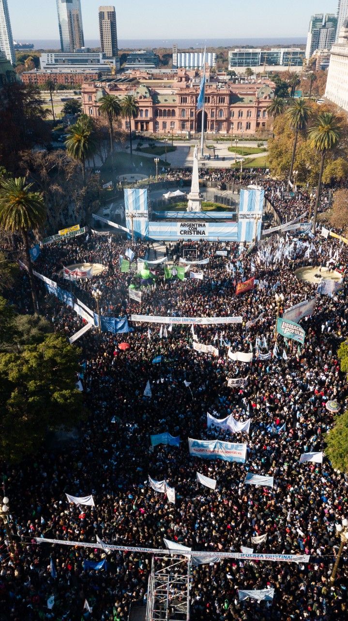 Una multitud colmó las calles de la Ciudad de Buenos Aires. Desde Constitución, pasando por el Obelisco, hasta Plaza de Mayo. ¿Por qué? Por la democracia. Un peronismo unido atrás de Cristina, pero también los partidos de izquierda en contra de la proscripción de una líder opositora, jubilados, estudiantes, personas autoconvocadas que salieron a recordar que estamos en democracia: el pueblo en la plaza.